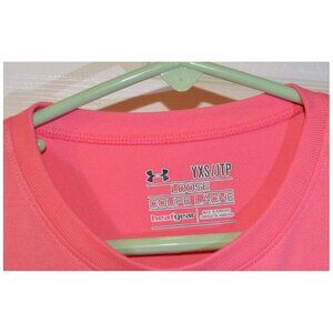 Under Armor Heat Gear Logo T-Shirt Unisex Pink Child Size XS Loose Short Sleeve