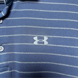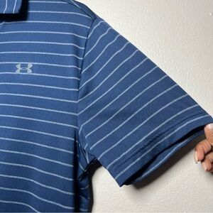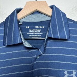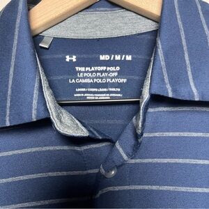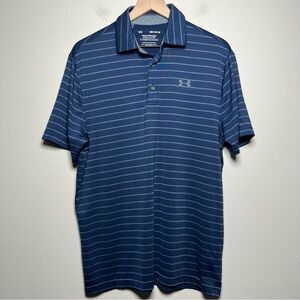 Under Armor Men Playoff Polo Shirt Medium Navy Blue Stripe Short Sleeve Golf Performance