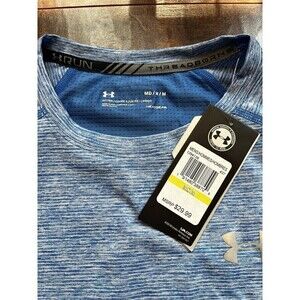 Under Armor Mens NWT Blue Thread Brown Heat Gear Short Sleeve Blue Shirt Sz M