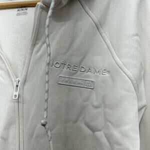 Show your Notre Dame pride with this stylish Under Armour hoodie. This white zip-up sweatshirt is perfect for any Fighting Irish fan. The hoodie features the iconic Notre Dame logo embroidered on the front & back. It is a women's size medium and made with quality materials for comfort and durability. Wear it to the game, around campus, or just lounging at home.