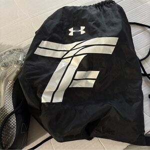 Elevate your track and field performance with these black Under Armour cleats. Designed for both men and women with a US shoe size of 7.5/9, these sneakers are perfect for any athletic activity. The durable construction and sleek design make them a great addition to your sports wardrobe, while the comfortable fit ensures you can stay on your feet for hours.