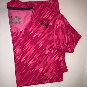 Under Armour, XS, fitted ,heat gear, pink and white watercolor design