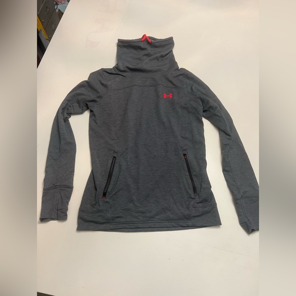 Under Armor pullover grey and neon orange. Zip pockets