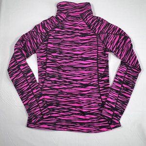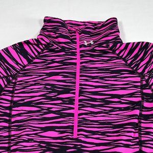 Under Armour 1/2 Zip Pullover Size Small Pink Black Animal Print Thumb Holes