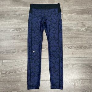 Under Armour 1297911 Printed HeatGear Compression Tights Leggings in size M. Excellent like new condition. Black and blue/purple pattern all over with black waistband and side details, HeatGear technology wicks moisture away to keep cool and dry, antimicrobial technology. Please see photos for approximate measurements and details. Item may show difference in color based upon photography and perception. Photos are part of the description, as everyone’s level of condition may vary. From smoke free and pet free home. All packages are shipped the same or next business day.