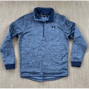 Under Armour 1/4 Zip Pullover Fleece Men's Small Blue Cold Gear Loose Fit