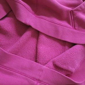 Sweatshirt is faded, shown mostly near cuffs/hem, not very significant or noticeable.