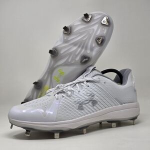 Under Armour 3025592-100 Yard Low Baseball Metal Cleats White Grey Size 16