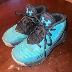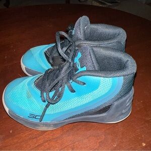 Elevate your child's active and casual wear with these Under Armour 3C basketball shoes. Designed for boys in size 7K, these high-top sneakers feature a lace-up closure and a blue and black colorway that will match any outfit. The synthetic upper material and foam insole provide comfort and durability for summer, fall, and spring seasons, making them perfect for basketball games or casual play.