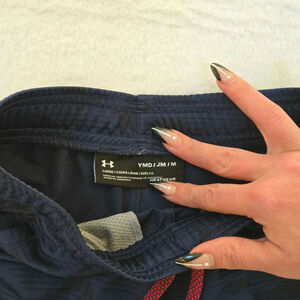Under Armour 4 boys elastic waist shorts drawstring black red- Youth Medium
