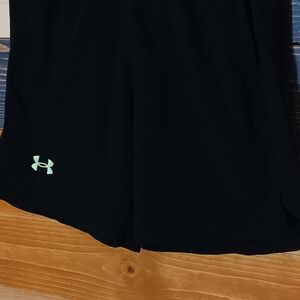 Under Armour 7 in. 2-in-1 shorts. Size S and in the color black. These shorts are in excellent condition. They are lightweight, with mesh panels for comfort. They also have a mesh layer inside.