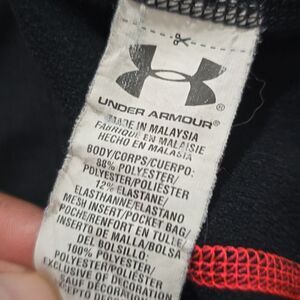 This is an Under Armour shirt jacket for women in size small. It features a collared neckline, full zip closure, and reflective pockets. The jacket is made of polyester knit fabric and has a Colorblock pattern. It is suitable for travel, activewear, and casual occasions during summer, fall, and spring. The jacket has long sleeves with casual sleeve type and a regular fit. It is designed with Under Armour logo accents and comes with a black cat, Black Widow, and Under Armour character theme. The jacket is machine washable and made in Malaysia.