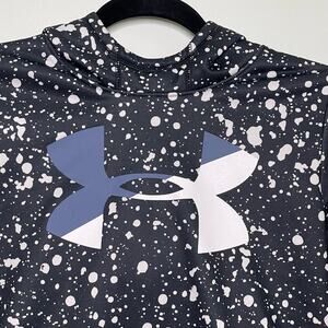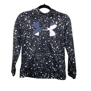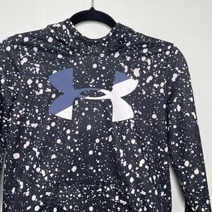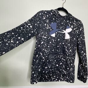 Under Armour All Over Paint Splatter Hoodie Fleece Logo Print Black White L
