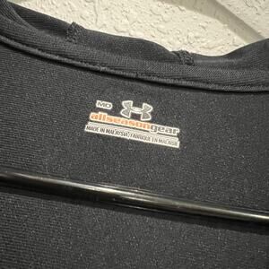 Stay comfortable and active year-round with this Under Armour All Season Gear black full-zip hooded jacket (size medium). Designed with a semi-fitted silhouette, it offers a flattering yet flexible fit that moves with you. The lightweight, breathable fabric provides warmth without bulk, making it perfect for workouts, running errands, or layering over casual outfits. The classic black color and functional hood add versatility, so you can pair it easily with leggings, joggers, or jeans for sporty, everyday style.