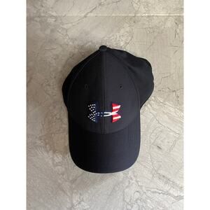 Under Armour American Flag logo black stretch-fit baseball hat. Size L/XL.