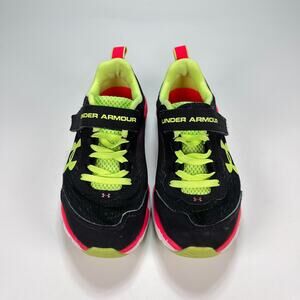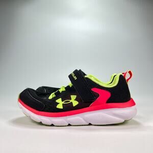 Under Armour Assert 9 AC Black Pink Green Hook & Loop Running Shoes Youth Size 1