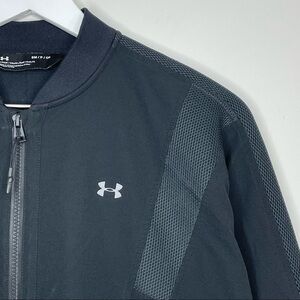 Under Armour Mixed Media Athletic Bomber Lined Black Jacket