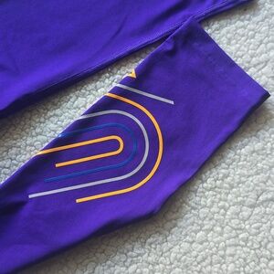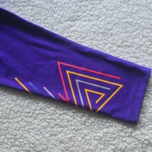 Bright purple leggings with geometric accents. Perfect for active life style.