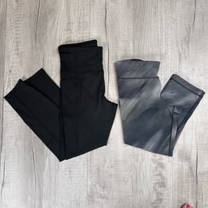 Women's High Waisted Capri/Full Length Leggings by Under Armour & Avia, Lot of 2, US Size Small, Black/Gray in Color, Stretchy, Pull on, Elastic waist, Wide waistband, Side pockets, logo, Activewear, Gym, Workout, Casual, Comfortable, Everyday wear.