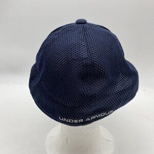 Under Armour Ball Hat Cap Blue Half Mesh Fitted Large Stretch Logo Spellout