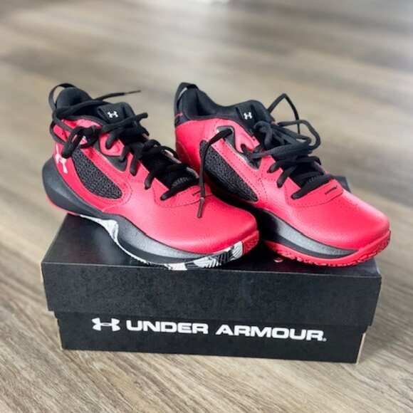Brand new, still in the box kids basketball shoes. Shoe model is UA GS Lockdown 6 color is red/black.
