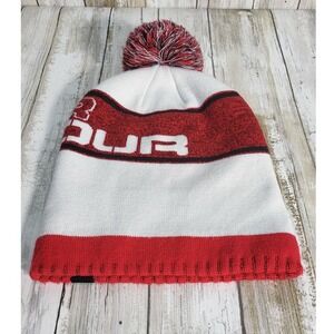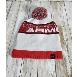 Under Armour Beanie Pom Knit Hat White Red Winter Knitwear