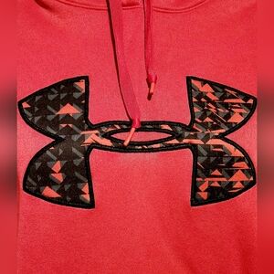 Big logo design hoodie in dark pink. Design flows into the inside of the hood as well.