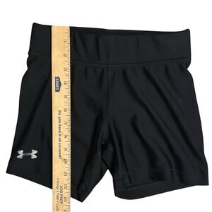 Experience ultimate comfort and flexibility with these Under Armour black athletic shorts. Designed with a wide elastic waistband and form-fitting compression material, they ensure a secure fit and excellent range of motion. The moisture-wicking fabric keeps you dry and focused during intense workouts.