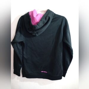 Comfortable black hoodie with a bold pink Under Armour logo. Features a front pocket and drawstring hood.