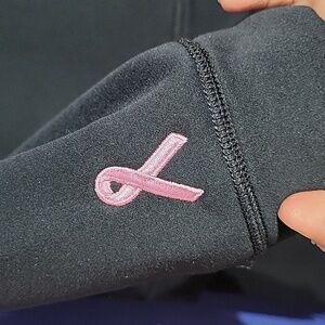 Black loose fit Under Armour with pink storm symbol, breast cancer symbol, and kangaroo pockets in good pre-owned condition.