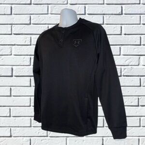 Under Armour men’s long sleeve pullover. Designed in a smooth black performance fabric, this top features a two-snap Henley neckline and tonal “home plate”