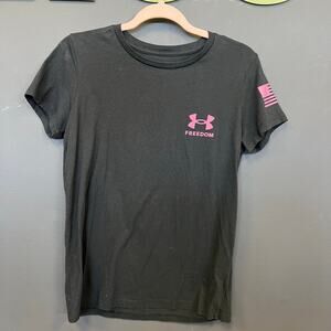 Under Armour Black + Pink Freedom Loose Fit Graphic Tee Medium