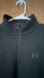 Sleek black jacket with quarter-zip design. Features a handy sleeve pocket. Features a fleece lining. In excellent condition and hardly worn. Measures approximately 22 inches pit to pit.