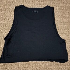 Sleek black sleeveless top with bold logo. Ideal for active wear.