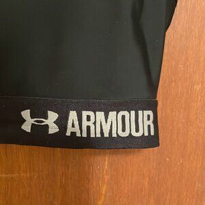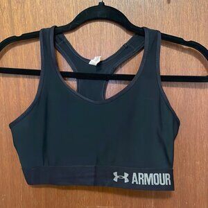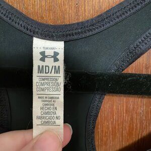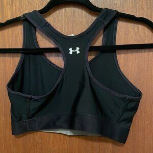Under armour black sports bra. In great condition other than some lines in the elastic (elastic still seems fine, not sure what it’s from). No padding.
