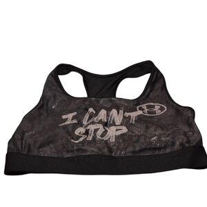 Stylish sports bra with 'I Can't Stop' print. Comfortable and supportive. Ideal for workouts. Mid Alter Ego. Size L. Compression/Medium Support. Polyester/Elastane blend. See pics for details.