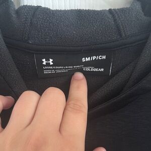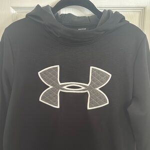 Sleek black sweatshirt with bold white Under Armour logo. Perfect for casual wear.