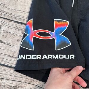 Under Armour Black Swim Trunks With Mesh Lining Elastic Waistband Size 10