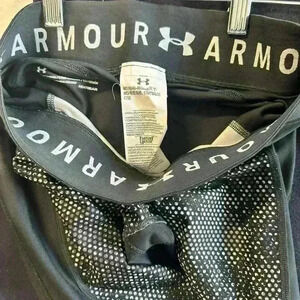 These form-fitting leggings by Under Armour feature a unique pattern on the front against the black background. With a high waistband for a sleek look.