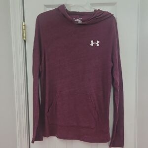Under Armour long sleeve shirts. Includes one black and one burgundy with hood. Ideal for everyday wear. Pre-owned- great condition.