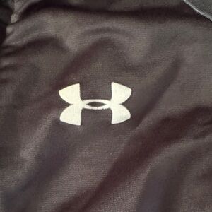 Stylish kids jacket by Under Armour. Features a sleek black design with gray patterns. Perfect for active wear.