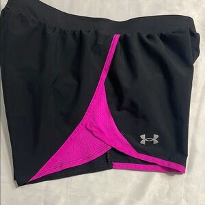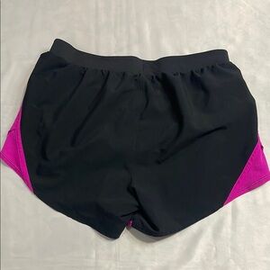 Experience ultimate comfort and style with these Under Armour athletic shorts, featuring a sleek black design with vibrant pink accents. Crafted from lightweight, breathable material, they are perfect for running or training. The elastic waistband and classic athletic cut ensure a secure and comfortable fit.