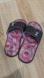Under Armour slides with black strap and purple patterned footbed. In good shape have been worn with love. They are dirty but will probably clean up nice, see pictures. Size 4.