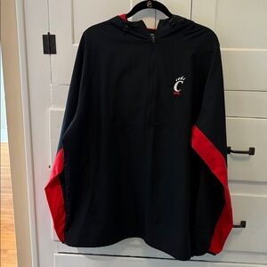 Stylish lightweight jacket. Features bold red accents. Perfect for casual wear. Never been worn.