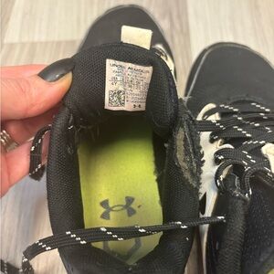 Dynamic Under Armour shoes in black and white. Ideal for active lifestyles.