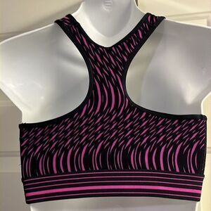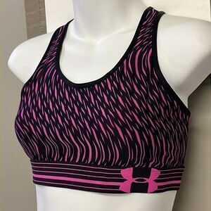 Under Armour Black/Pink Abstract Design Compression HeatGear Sports Bra- Medium