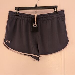 Experience ultimate comfort and mobility with these Under Armour blue athletic shorts, crafted from lightweight, breathable material. Designed for optimal performance, they feature a relaxed fit and a classic running short silhouette with split sides for enhanced movement. Ideal for workouts or casual wear, these shorts offer a minimalist design that prioritizes functionality.