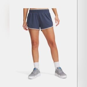 Experience ultimate comfort and mobility with these Under Armour blue athletic shorts, crafted from lightweight, breathable material. Designed for optimal performance, they feature a relaxed fit and a classic running short silhouette with split sides for enhanced movement. Ideal for workouts or casual wear, these shorts offer a minimalist design that prioritizes functionality.
