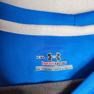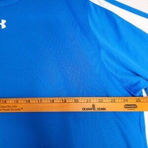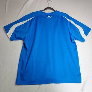 Blue athletic t-shirt with white accents. Features Under Armour logo on the front.
