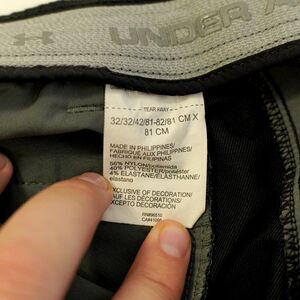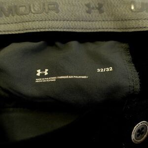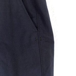 Under Armour Blue Elastic Waist Low Rise Athletic Polyester Pants 31/31 are solid blue chino pants made of machine washable polyester material. They feature an elastic waist, belt loops, and a flat front. The pants have a straight leg style with an 18-inch leg opening and a low rise fit. These pants are designed for athletic men and are available in a regular size type with a 31-inch inseam. They are suitable for all seasons, including winter, summer, fall, and spring.